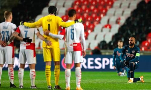 Lacazette Takes The Knee In Front Of Slavia Prague As Arsenal Players Make Statement Against Racism Youtube
